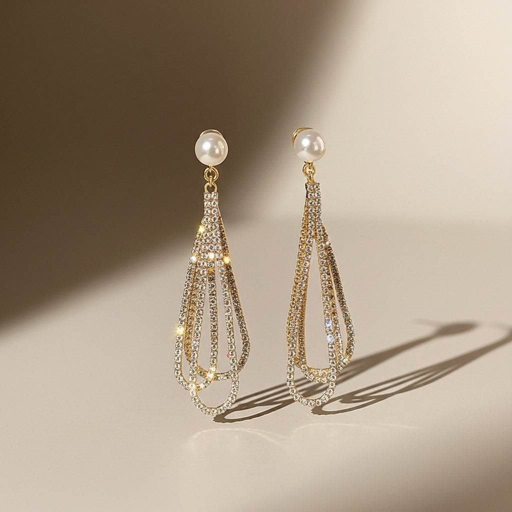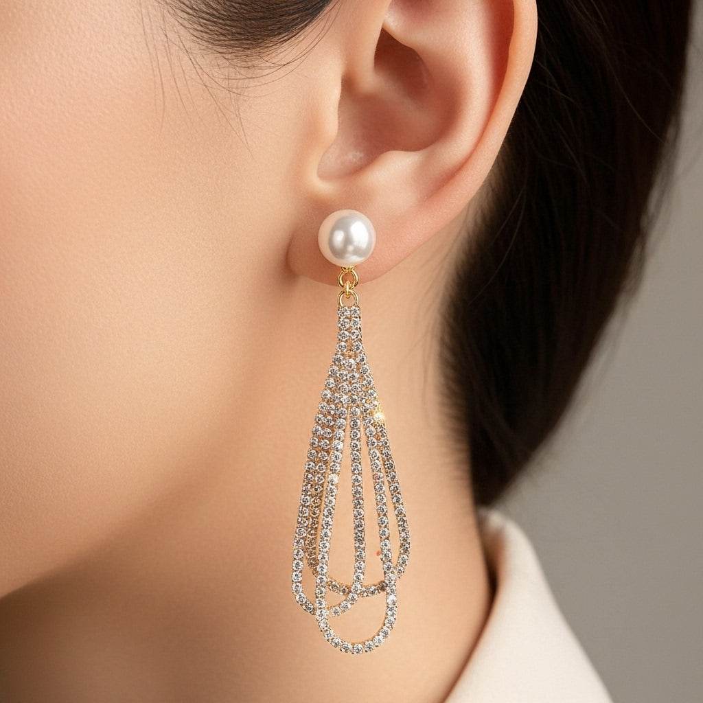 Elegant Rhinestone Earrings | Chandelier Tassel Design with Faux Pearls -
