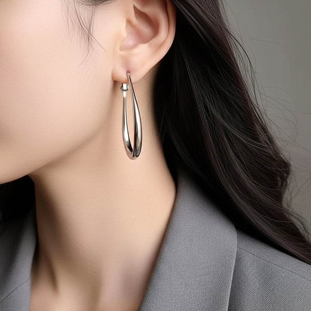 New Earrings Design | Silver Drop Hoop Earrings – Lightweight & Modern Style -